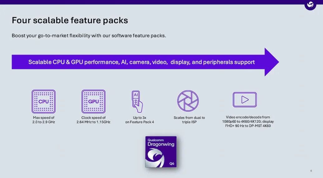 这些优势与软件可配置、可扩展的平台相结合,使 Dragonwing Q-6690 成为寻求简化设计、缩短上市时间和面向未来的产品线的 OEM 和 ODM 的绝佳选择。