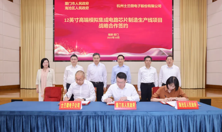 10月18日,厦门市人民政府、厦门市海沧区人民政府、杭州士兰微电子股份有限公司在厦门签署《12英寸高端模拟集成电路芯片制造生产线项目战略合作协议》,计划投资200亿元在厦门市海沧区投资建设一条对标国际领先水平、以IDM模式运营、拥有完全自主知识产权的12英寸高端模拟集成电路芯片生产线。10月19日晚间,士兰微正式发布公告,详细介绍了该项投资合作。