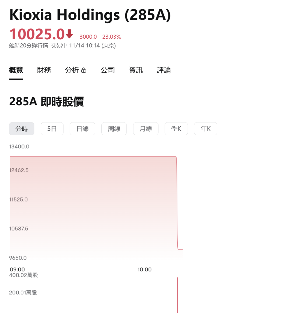 11月13日,东京交易时段,铠侠股价下跌1.62%。铠侠财报暴雷后,波及其海外同行,希捷股价下跌7.31%,西部数据下跌5.29%,美光科技下跌3.25%。11月14日早盘,铠侠股价暴跌23.03%。