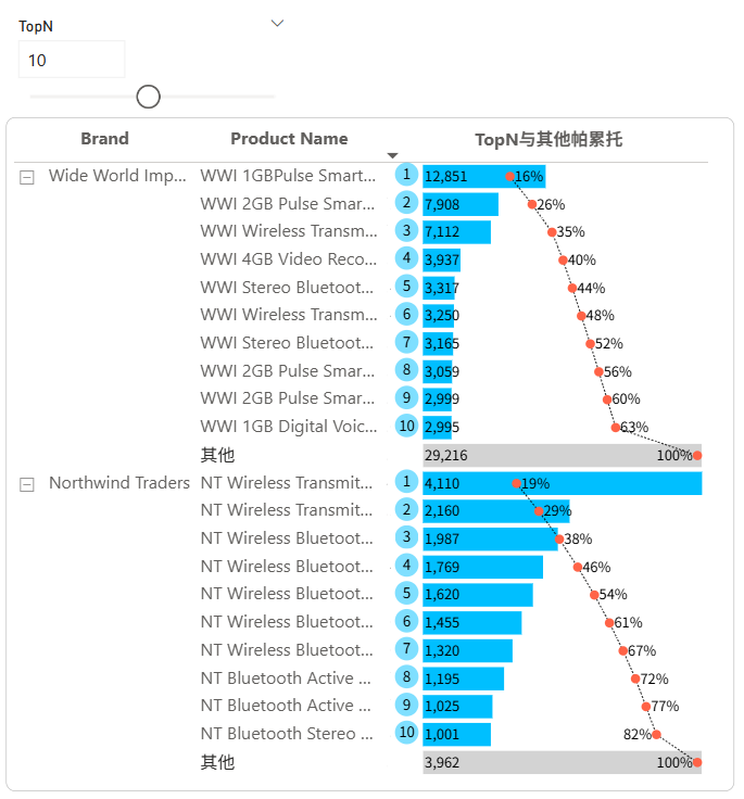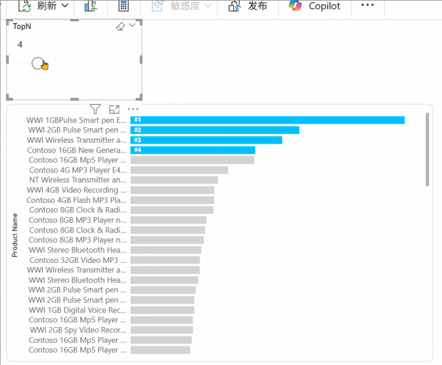 IF(n<=[TopN 值],"deepskyblue","lightgrey")条形数据标签fx设置为: