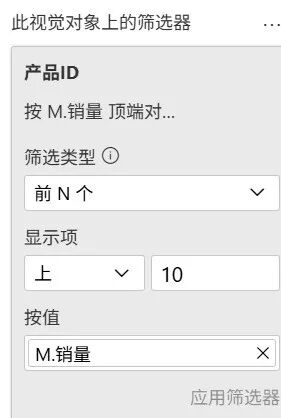 视觉对象筛选器设置为只显示前10: