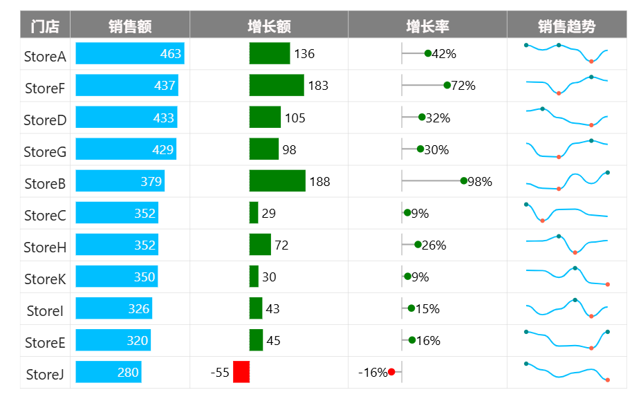 它的单元格不仅支持显示文本、数值,还支持内嵌迷你图表: