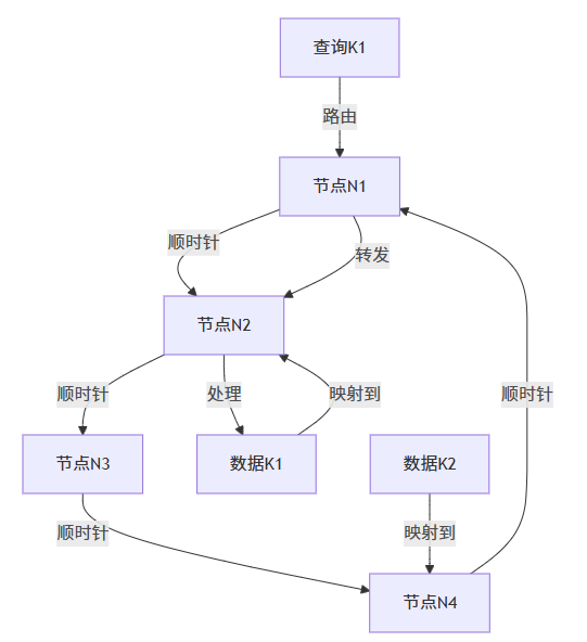 Chord算法的核心思想是将节点和数据映射到一个虚拟的环形空间中,每个节点负责维护一部分数据。当需要查找某个数据时,通过贪心路由策略,沿着环的顺时针方向逐步逼近目标节点。