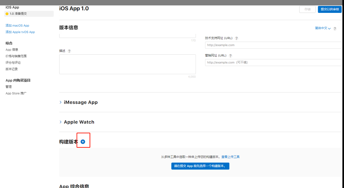 里面有很多资料需要填写,其中有一项是需要选择构建版本,这里是需要使用前文里提到的工具来上传的,如下图: