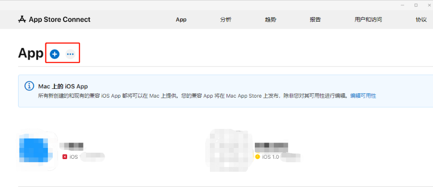 上传步骤也相对简单,找到app store connect下面的APP模块,即可进去创建APP,进行分发上架了,如下图:
