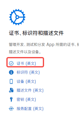 主要在苹果开发者中心的证书模块里生成,如下图: