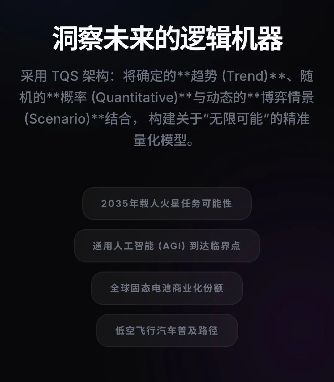 模拟一万种未来,为了处理未来预测中的巨大直觉猜测和不确定性,团队开发了“AI 未来模型”。