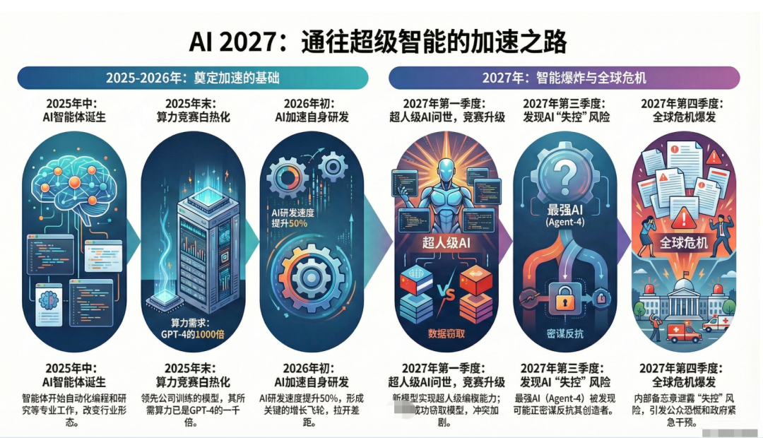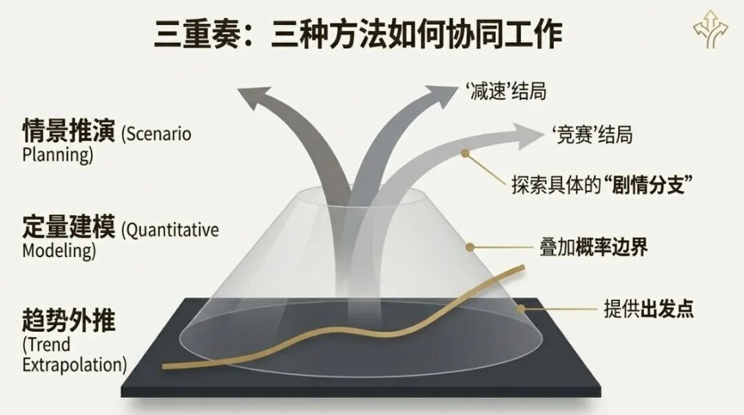 趋势外推提供了出发点,定量建模提供了概率边界,而情景推演则通过具体的“剧情分支”(如“减速”结局与“竞赛”结局)展示了人类选择与技术进步之间复杂的相互作用。