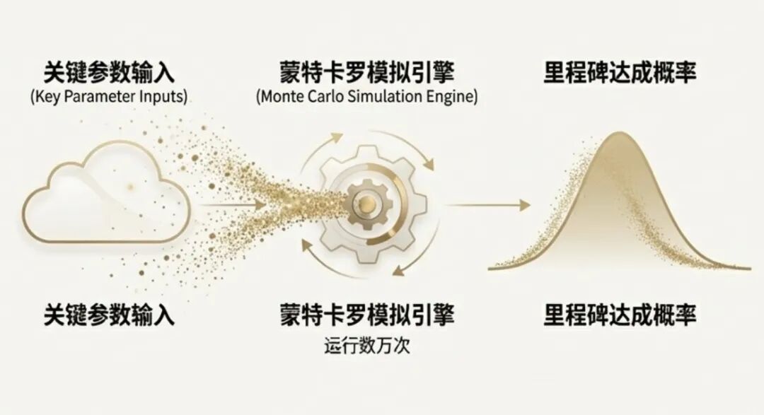 科学价值:通过模拟,得出不同时间点达成里程碑的概率分布,而不仅仅是一个单一的日期。