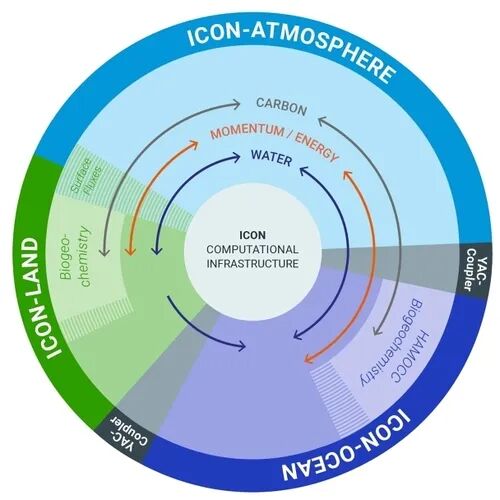 高分辨率数字地球模拟系统是由大气圈、水圈、陆地表面、冰雪圈和生物圈组成的复杂系统,这些圈层通过物质和能量的交换相互作用,影响全球气候变化,已成为现代气候科学研究的重要工具。然而,模拟人类活动对气候的影响极具挑战:这需要同时计算水、能量与碳的循环,厘清其相互作用,并还原物理、生物与化学过程在时空尺度上的交织影响。这一巨大挑战导致了长期以来的技术困境:科学家们不得不在“高分辨率”与“完整性”之间做出取舍——要么以高分辨率模拟单一圈层(如仅模拟大气圈),要么以低分辨率模拟整个系统(难以捕捉对流、热带气旋等中小尺度过程),因而始终无法构建一个既能洞察局部细节、又能展现全球互动的“完整地球气候系统”。