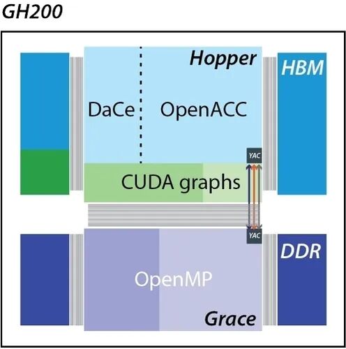 高精度高分辨率“完整地球系统”模拟离不开超算的支撑。为完成这一重要模拟,该团队利用瑞士“Alps”超级计算机上的8192个GPU和德国“JUPITER”超级计算机上的4096个GPU,高效利用了GH200超级芯片的混合架构,协调并扩展了多种物理、化学和生物过程的仿真。依托超级算力,该模型首次在全球尺度上实现了1.25公里网格间距的完整地球系统模拟,在极高自由度下仍达成最优时间压缩,并准确捕捉了能量、水体和碳通量在大气、海洋与陆地之间的流动。