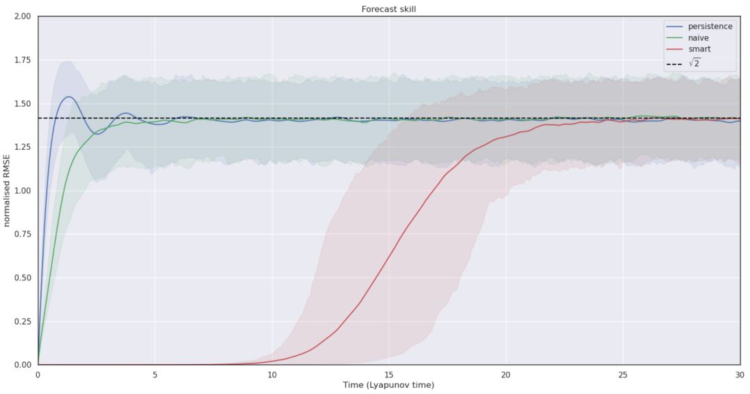 图 4: 内嵌物理信息的智能模型(Smart ML)与纯数据驱动模型(Naive ML)的预测能力对比(基于 Lorenz-96 实验)
