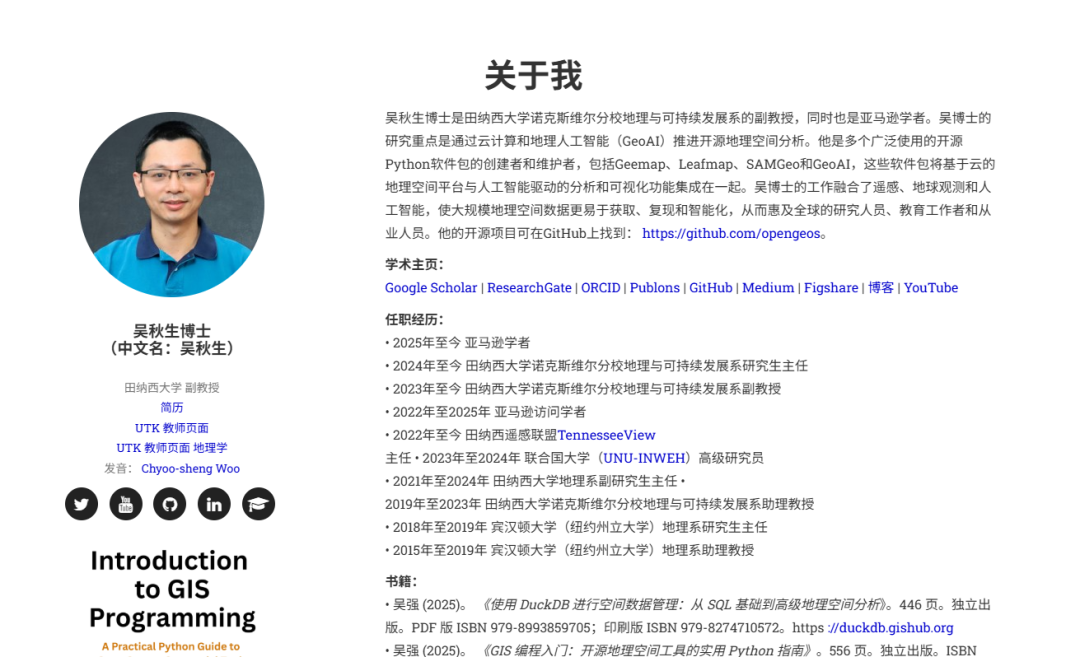 插件名叫 Earth Engine Data Catalog 。相较于插件,我更愿意把作者介绍给大家,一位GIS界的真大神。 作者是: 吴秋生 , 田纳西大学 教授。