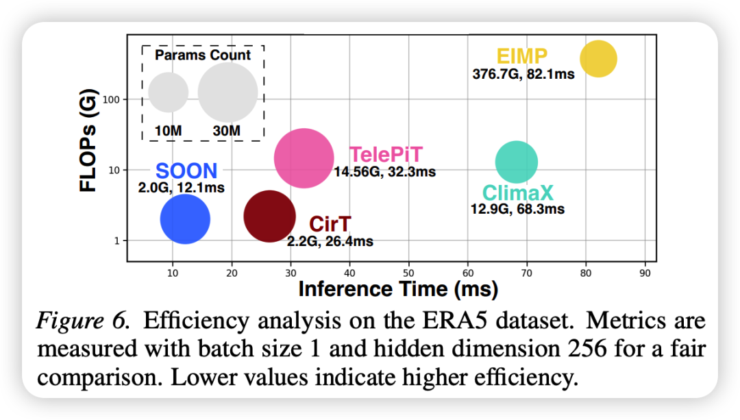- • 推理速度比CirT快2倍以上,比ClimaX快5倍以上,显存占用更低。