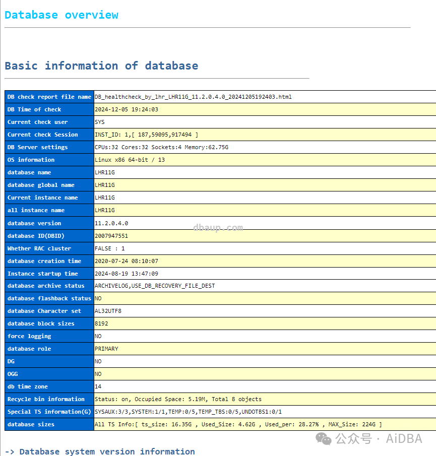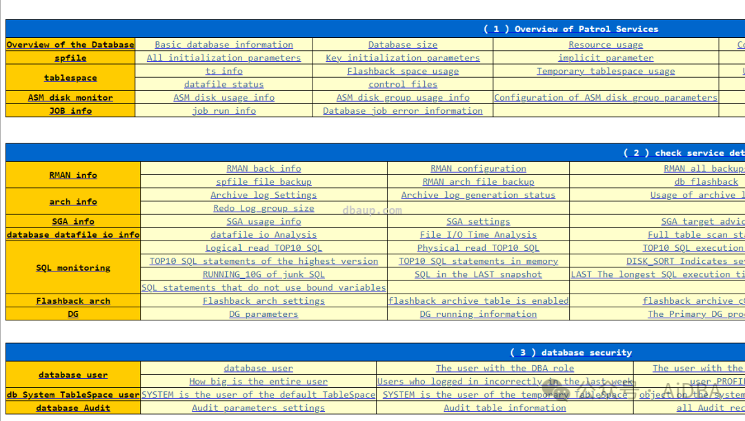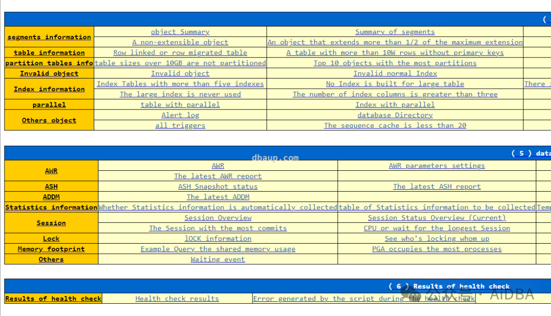 其它不截图了,全部内容,大家可以打开 https://dbhealthcheck.dbaup.com/DBhealthcheck_Results_Example/oracle/Oracle_11g_health_check_report_en.html 查看。