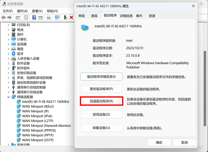 驱动程序问题是导致硬件功能异常的常见原因。可以通过回退驱动版本或重新安装驱动来解决。