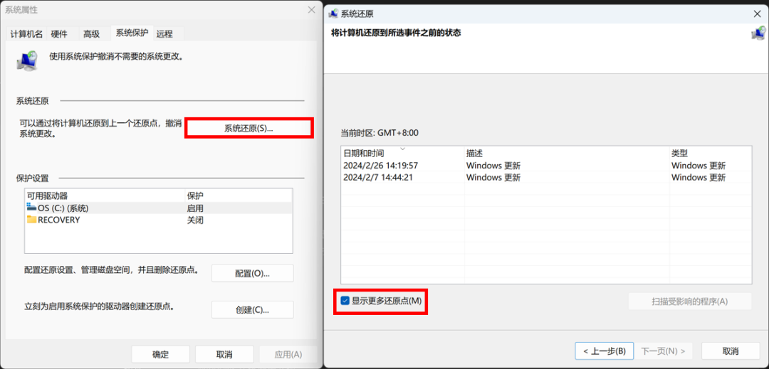 - 点击【下一页】,勾选【显示更多还原点】