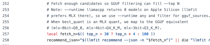 在 Apple Silicon 场景下,hf-agents 脚本注释明确提到 llmfit 更偏向给出 MLX 结果;