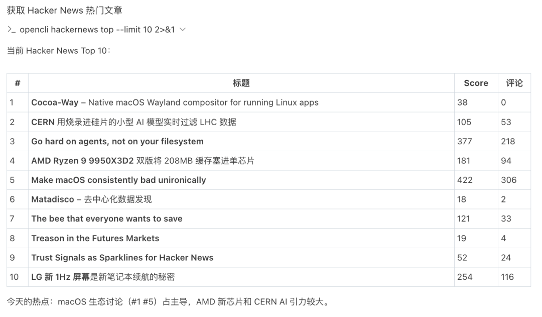 opencli hackernews top