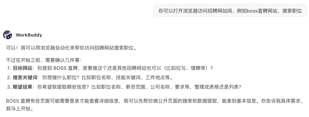 这一点就解决了之前我在 WorkBuddy 里面尝试使用浏览器自动化技能来搜索 Boss 直聘网站的问题:网站有反自动化的机制。