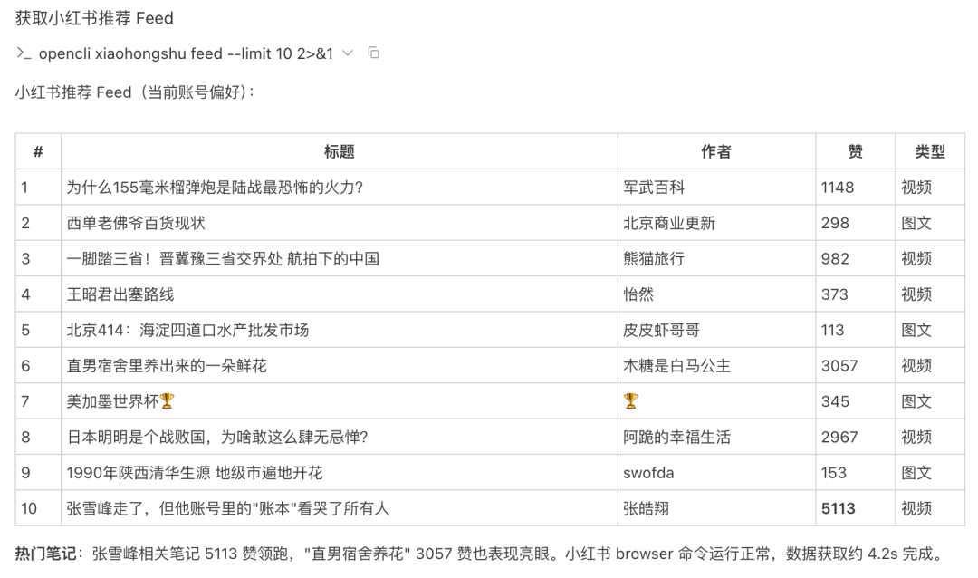 opencli xiaohongshu feed