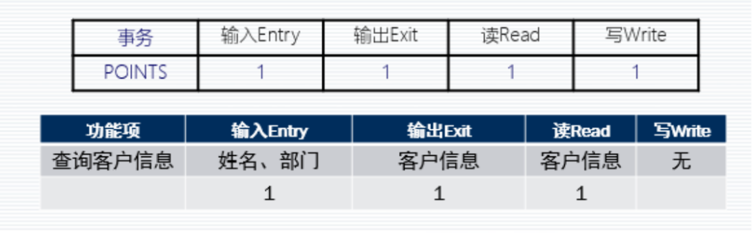 2、 NESMA度量方法展示NESMA方法不需要进行复杂度判断,而且每种功能类型都有固定的功能点数。