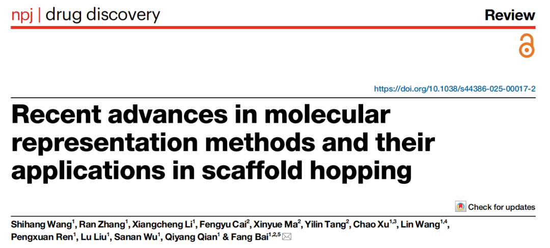 标题:Recent advances in molecular representation methods and their applications in scaffold hopping