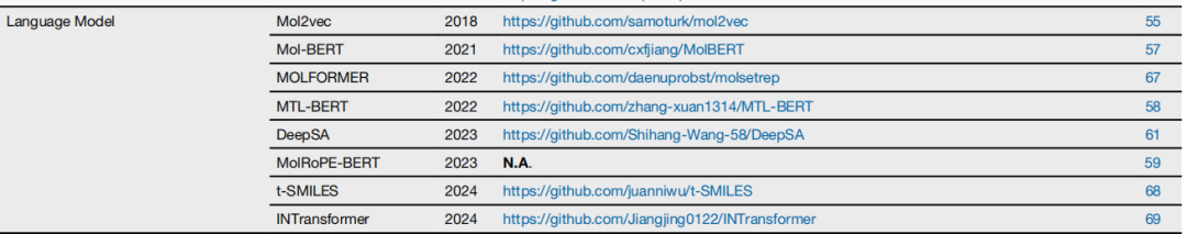 受自然语言处理(NLP)进展启发,将Transformer等模型适配用于分子表示,通过将分子序列(如SMILES或SELFIES)视为特殊的化学语言:
