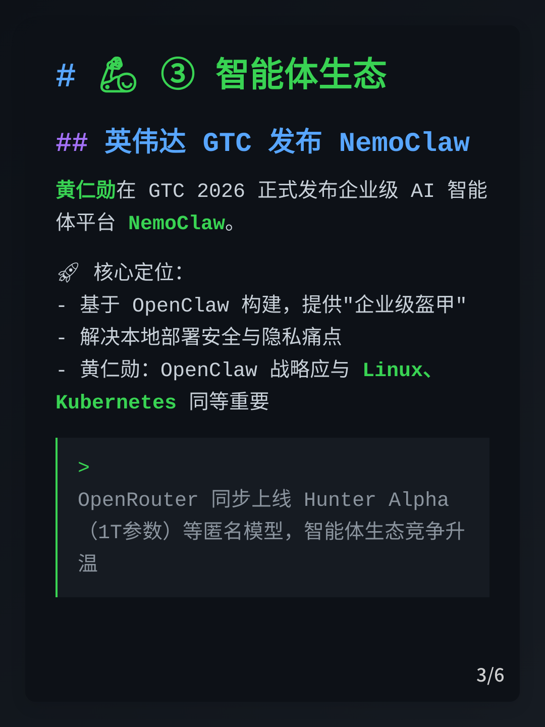 03AI应用🦾 英伟达 GTC 2026 发布 NemoClaw,黄仁勋力推 OpenClaw 战略