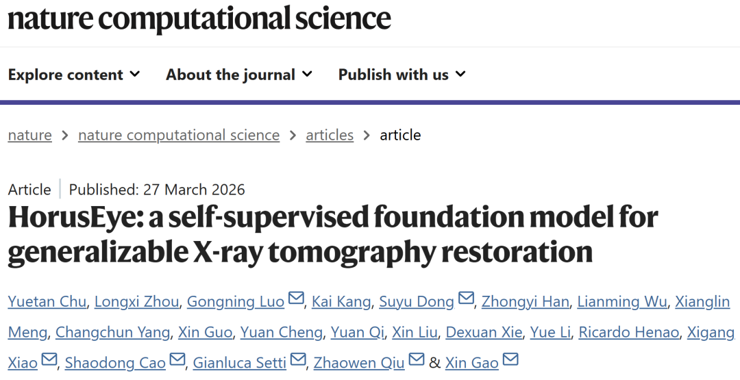 Chu, Y., Zhou, L., Luo, G. et al. HorusEye: a self-supervised foundation model for generalizable X-ray tomography restoration. Nat Comput Sci (2026).