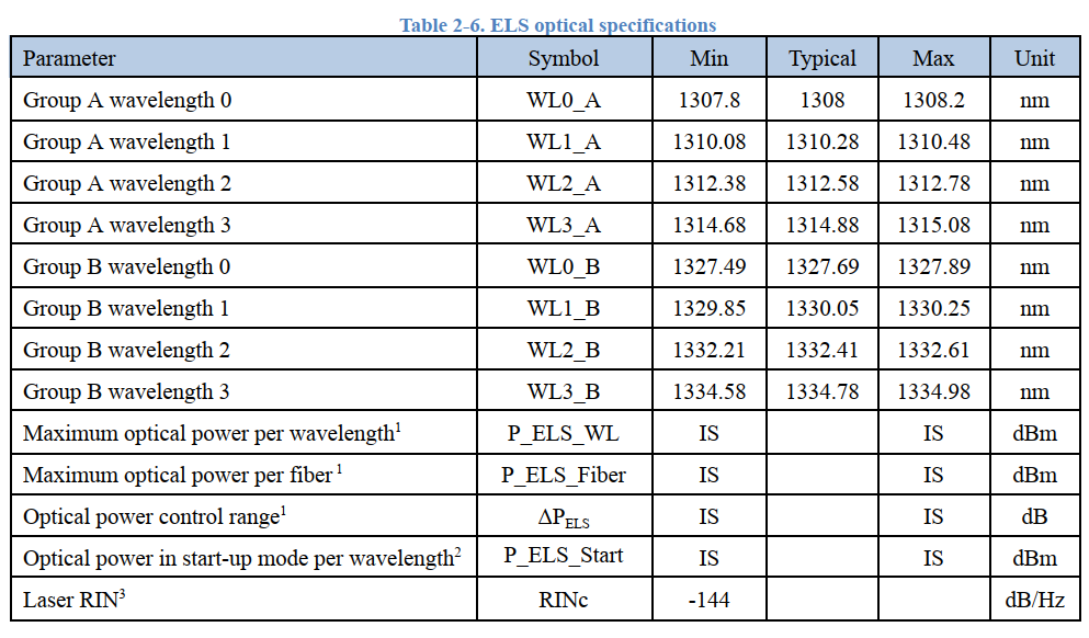 ELS激光器方面,没有特别规定出光功率,RIN最小值为-144dB/Hz,线宽最大为1MHz,单个通道的波长精度为±0.2nm。ELS模块需通过保偏光纤与硅光芯片相连。目前ELS激光器大都为1310nm单一波长,针对DWDM波长的激光器则需要单独定制,成本较高。Ayar Labs和Lightmatter两家公司此前都分别针对DWDM波长进行过相关激光器模块的开发。