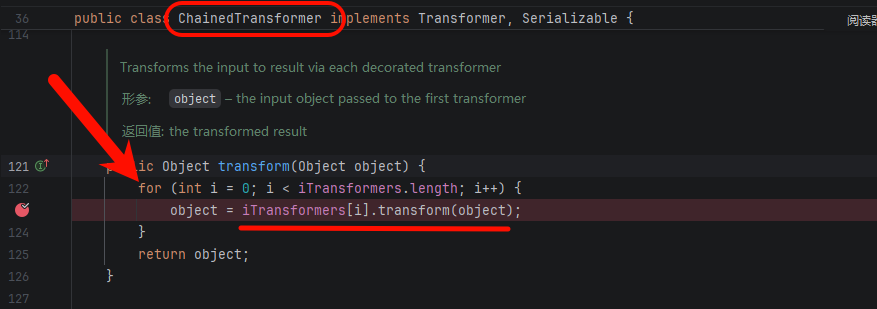 ChainedTransformer.transform()——它把每个 Transformer 串起来,上一个的输出自动传给下一个。这刚好弥补了需要多次调用 InvokerTransformer.transform() 才能实现完整反序列化链的问题。