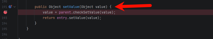 var5.setValue(...) // 只有类型不匹配才进这里var7 是注解方法的返回类型(ElementType[]),var8 是我们 map 里的值。只有类型不匹配,才会进 if 块调 setValue()。我们放字符串 "xxx",显然不是 ElementType[],条件满足。
