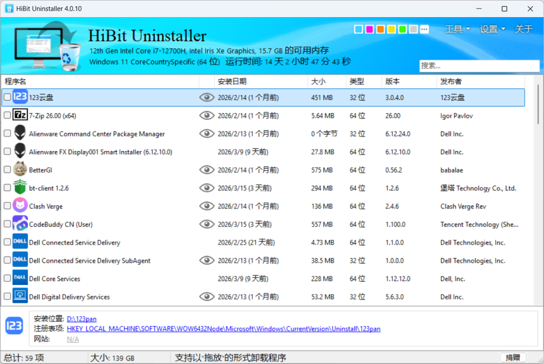 等你卸载的时候,所有相关的信息都可以一次性卸载完。