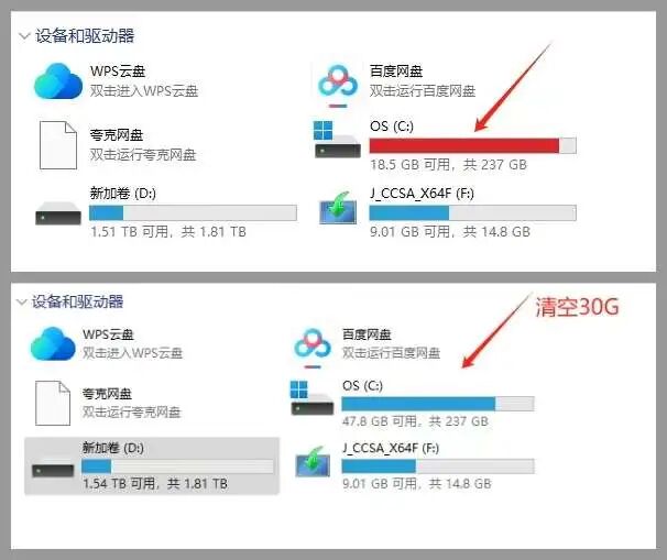 这30G是相对的,不同的电脑清空的情况不一样,有的人可以更高,有的人可能更底。