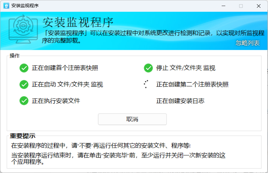 可能有的同学不懂,如果安装软件的时候,我们监视了就可以知道安装的软件,再次写入了哪些文件、创建了哪些注册表项、添加了哪些启动项……全部建档存档。