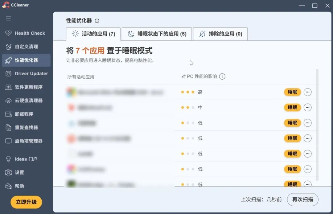 不清理,把一些没有用的软件进行休眠也是有必要的。