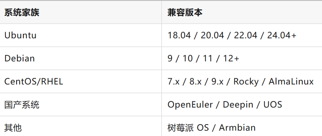 🐧 兼容性强 | 支持 Linux 内核 3.10+ 的所有发行版 |