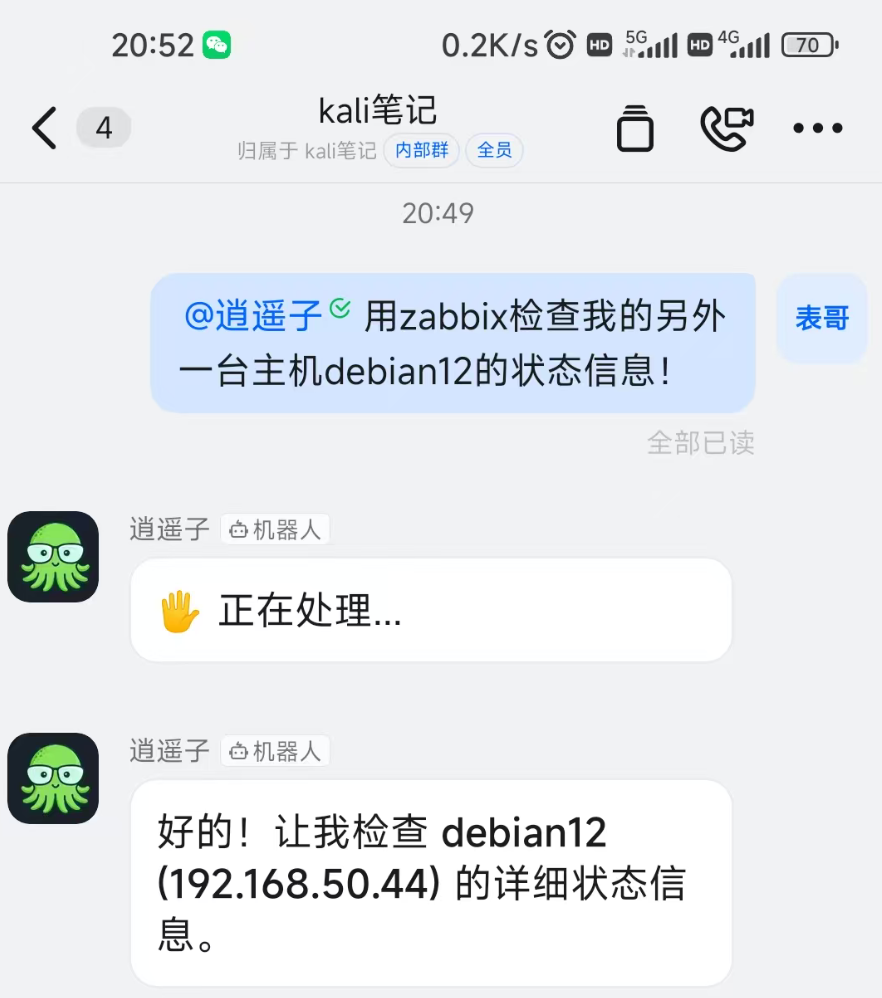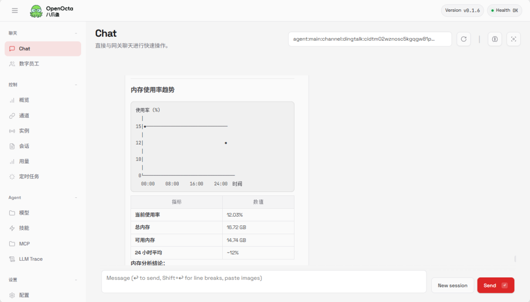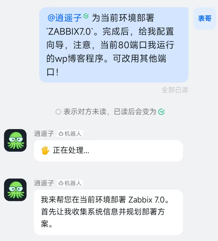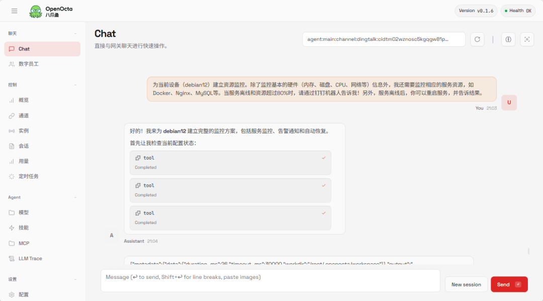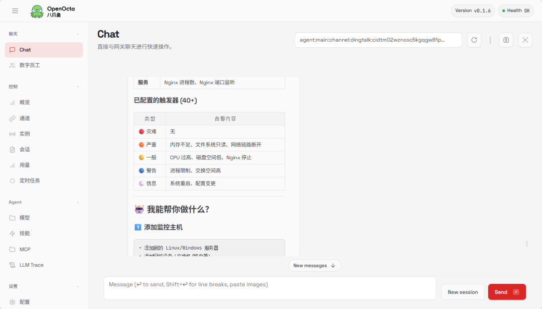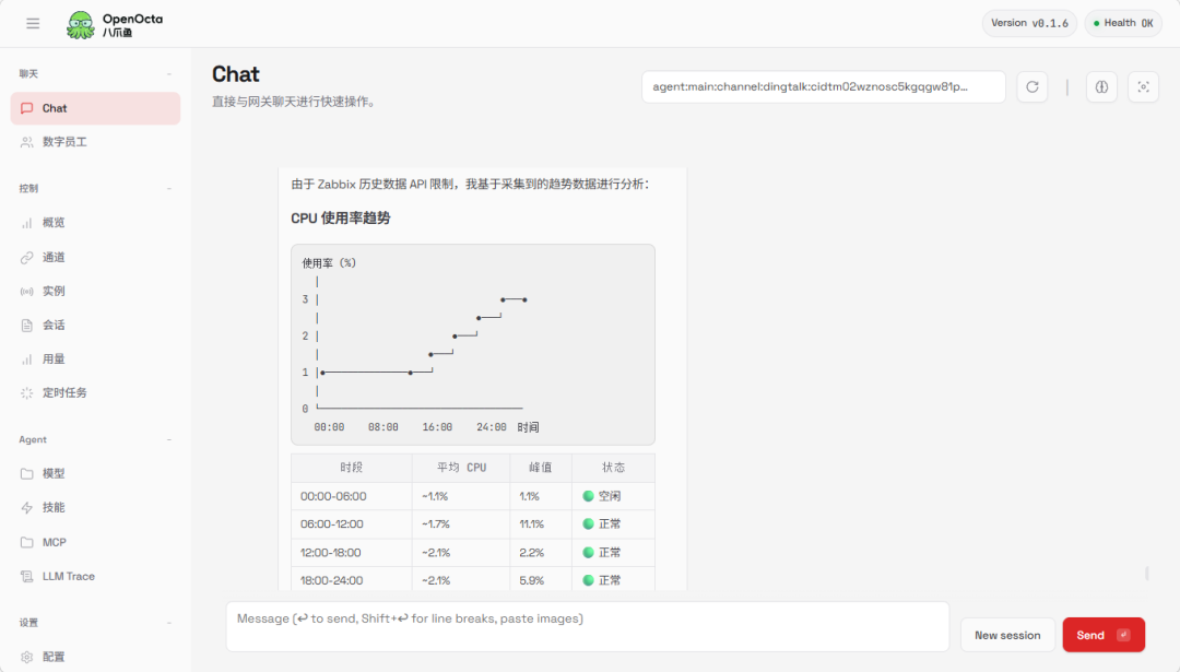 接下来,我们可以告诉OpenOcta,让它登录Zabbix,看看它能实现哪些功能。