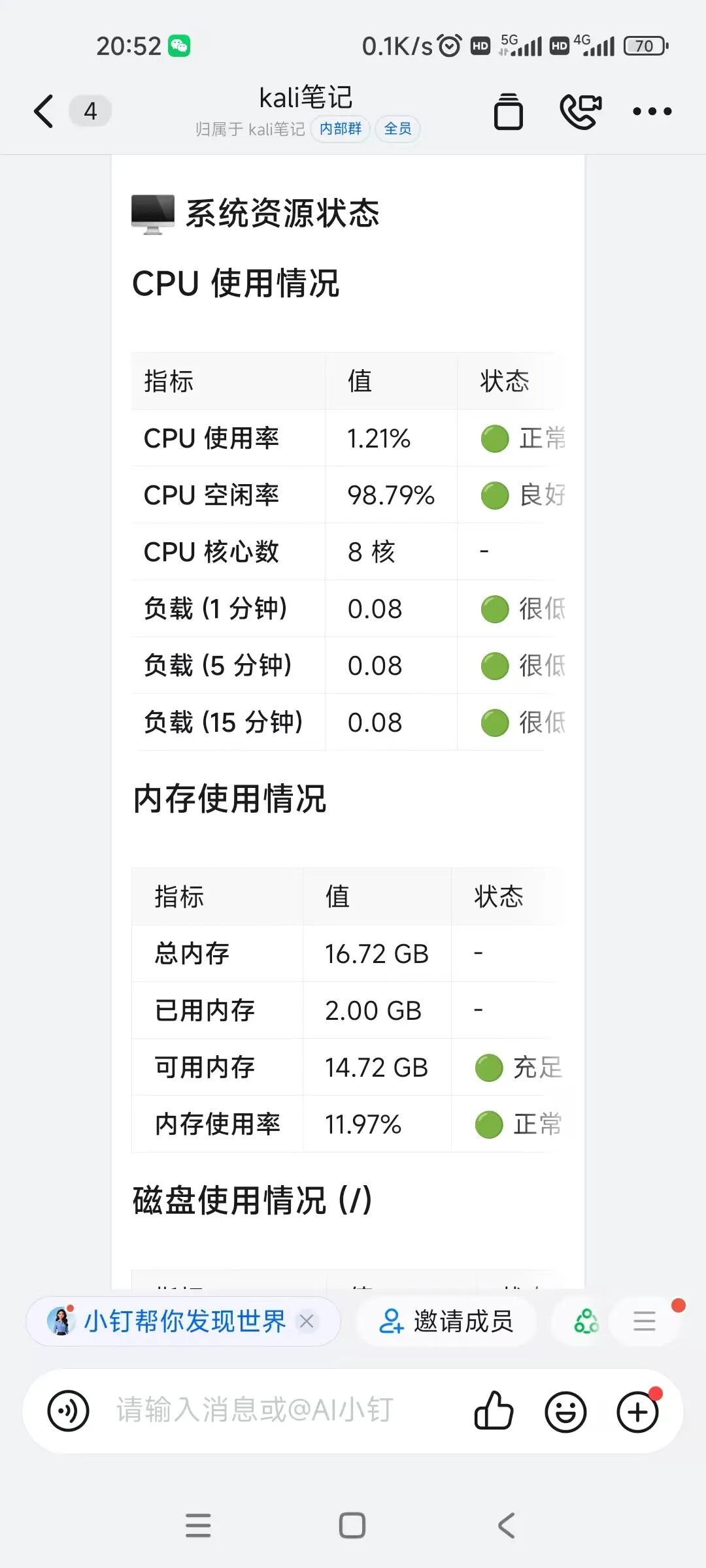 现在,我们可以通过钉钉随时查看设备的状态信息了。
