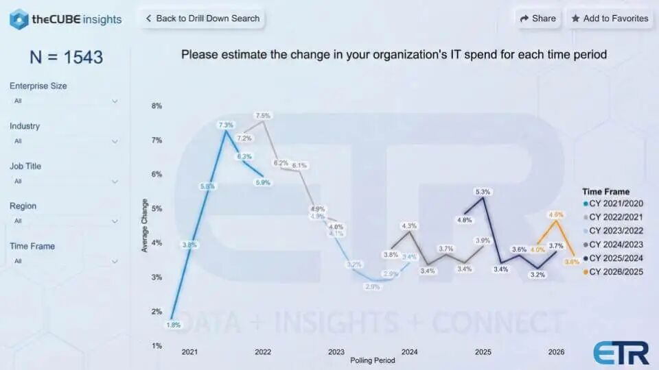 在这篇深度分析中,我们分享了来自企业技术研究(ETR)的新调查数据,该数据量化了宏观支出和AI在企业中的采用情况。我们提出了一个论点,解释AI热情与企业采用之间存在差距的原因,以及软件栈将如何演变以简化AI的采用和安全保障。最后,我们借鉴了2026年GTC的洞察,以及黄仁勋所称的其主题演讲中“最重要的幻灯片”。它提出了一个可能释放新一轮企业价值的新收入模式。