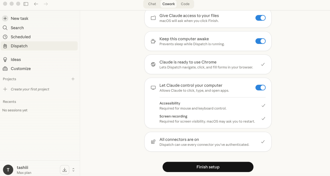 再加上上周更新的Dispatch,Claude,终于变得完整了。