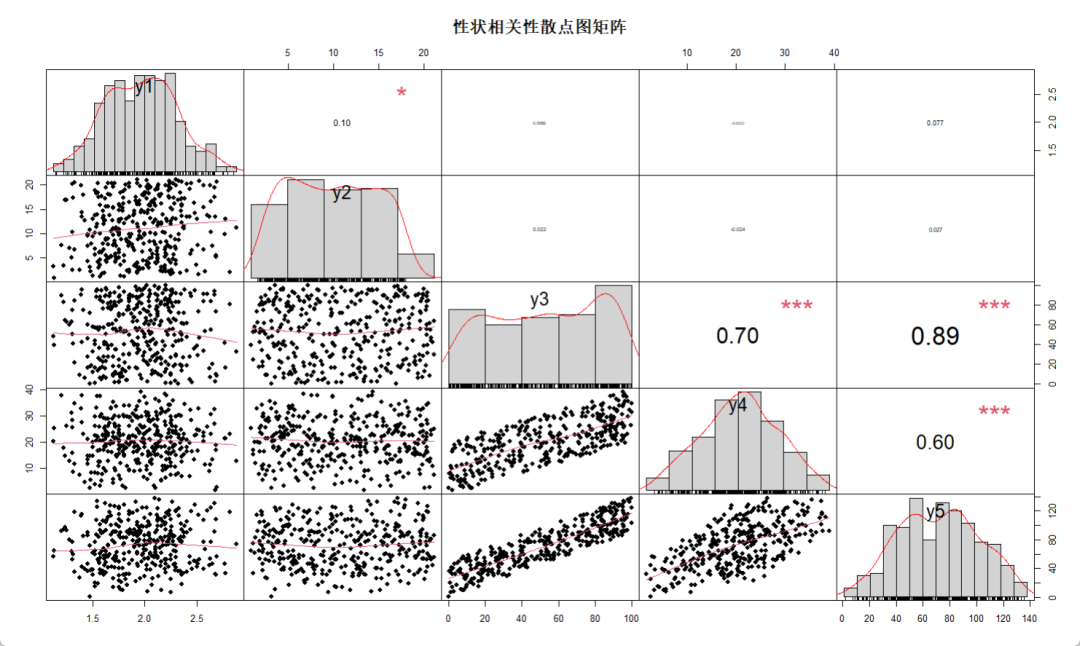 如果 y3 和 y5 的相关系数高达 0.95,那这两个性状在模型里几乎是同一回事,做多性状分析时要小心共线性问题。