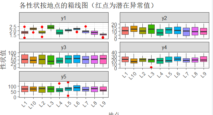 labs(title = "各性状箱线图(红点为潜在异常值)")