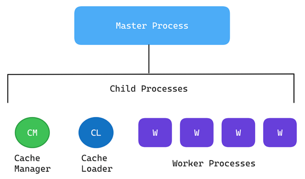 Nginx 启动后,你会看到一个 master 进程和多个 worker 进程。Master 就像饭店老板,他负责管理 Worker,比如读取配置、绑定端口、平滑重启这些管理活儿,他不具体接客。真正干活的是 Worker 进程。