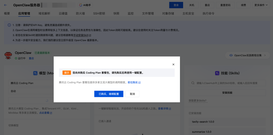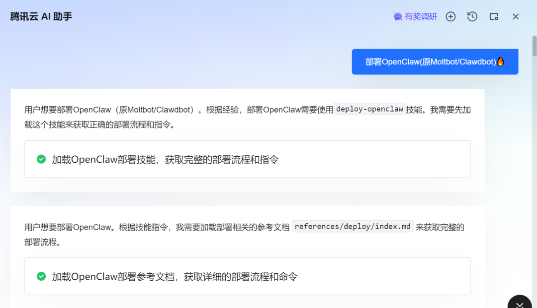 其实还可以通过控制台上的"腾讯云AI助手"协助安装,我尝试了下,