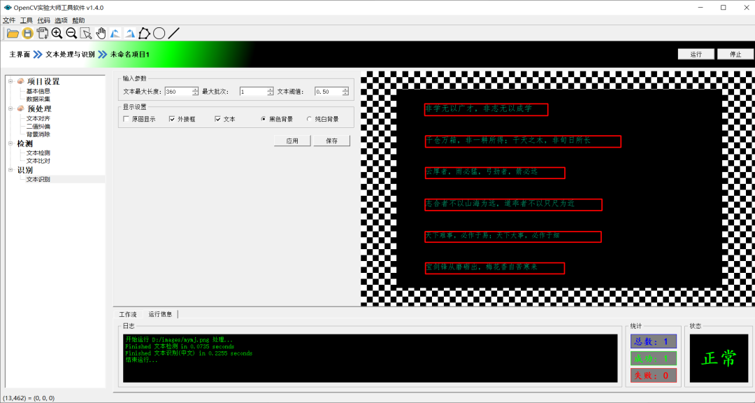 基于OpenCV1.4实验大师工具软件与OpenCV工作流SDK,实现快速OCR文本内容识别,首先生成文本检测与识别工作流文件。