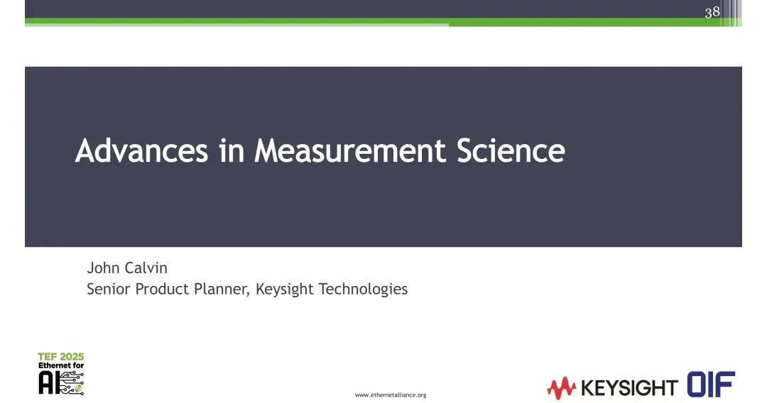 John Calvin的分享围绕高速互连技术的测试需求演进、信道性能测试、高阶调制分析能力、测试仪器性能展开。