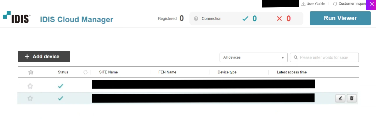 此时,用户可以访问管理面板。在面板中,用户可以添加、编辑和删除用于云管理的设备。